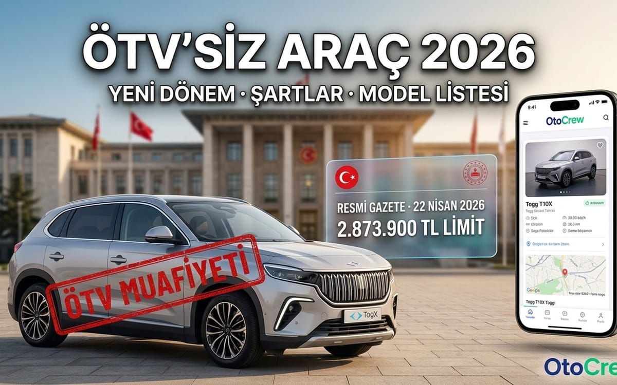 ÖTV'siz araç alımında 17 Nisan 2026 tarihli 33227 sayılı Resmî Gazete'de yayımlanan 7577 sayılı Kanun ile yeni bir dönem başladı. Ortopedik engeli %40 ve üzeri olup ehliyet alamayan vatandaşlar da artık ÖTV muafiyetinden yararlanabilecek. 2026 için fiyat tavanı 2 milyon 873 bin 900 TL, yerlilik şartı %40 olarak belirlendi. Bu rehberde yeni düzenlemenin tüm detaylarını, kimlerin yararlanabileceğini, alınabilecek araç listesini, Nisan 2026 güncel fiyatlarını ve başvuru sürecini adım adım özetliyoruz.